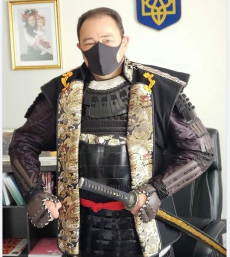 However, it's easy to see why the initial confusion existed. It's not the Japanese Ambassador to Ukraine, but the Ukraine ambassador to Japan. He was gifted the armor by a Japanese artist and donned for photographs and a Facebook video before the invasion.